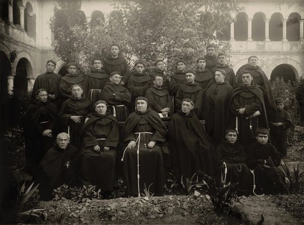 Editor: Here we have "Ministers of State," a gelatin silver print taken sometime between 1912 and 1920, by K. T. Thompson. Seeing all those serious faces lined up, I can't help but feel like I'm looking at a very important, yet slightly mysterious, moment frozen in time. What stories do you think this photograph is trying to tell, or perhaps hinting at? Curator: Ah, a photograph brimming with silent narratives! I’m drawn to the subtle details – the variation in their robes, the way the light catches some faces more than others, the faint architectural backdrop. It whispers of power, formality, but also hints at something just out of reach. Each face seems to hold a secret, doesn't it? Editor: Definitely, and those handwritten names at the bottom. Are those meant to be the key to unlocking it all, or are they leading us down a rabbit hole? Curator: Maybe a little of both! It suggests that individual identity matters within this group, yet the formal arrangement also emphasizes collective status and purpose. It’s like a carefully choreographed tableau, wouldn't you agree? I also wonder about the photographer...what was it like to witness and frame this portrait of a specific moment in time. Editor: You're right. It's striking how they're positioned. This photograph feels like a carefully constructed statement, a calculated move on both the ministers and photographer’s parts. Almost like propaganda, wouldn’t you say? Curator: Propaganda isn’t too strong a word. These photographic practices do provide unique glimpses into the self-image nations and peoples project. Do you see, maybe, a touch of theatricality, like a stage set? Editor: Absolutely! I came in thinking history, but now I’m seeing performance. Thanks, I’ll never see a group photo the same way again. Curator: And I find myself pondering, how can one capture an era? A culture? Is that even truly possible? Food for thought for the ride home, perhaps?