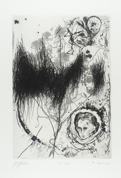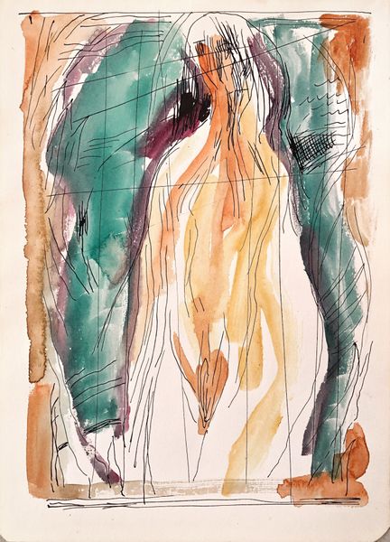 Editor: Here we have Rudolf Láng's "Hornbill," a watercolor painting from 1956. The textures are quite striking, almost rough despite the fluidity of watercolor. It's making me think about surface and depth. What catches your eye? Curator: Immediately, I consider the raw materiality. It’s not just watercolor, but how it’s applied – seemingly fast, gestural, with visible drips and pools of pigment. The artist emphasizes the physical properties of the medium. The paper support is integral to the overall piece as the negative space left by the paper is used as part of the representation. Do you think that the materiality references folk art traditions or non-art contexts such as illustrations from books and magazines that reflect industrialised techniques of production? Editor: That’s a good point. I see that the loose handling could be viewed in tension with the more traditional medium of watercolour. Curator: Exactly. Look at the contrast between the dark washes and delicate lines. It's not just representation; it's about the *doing*, the making. How does that immediacy influence your interpretation? Editor: I suppose it forces me to think less about the hornbill itself and more about Lang's process, like his mark-making. The dark plumage almost looks collaged or patchworked, making it resemble material, like it’s constructed from scraps of colour. I was preoccupied with symbolism. I should have considered the physical effort involved in its making, the selection of materials, the way watercolour pigment operates… Curator: And, from that labour comes a very striking composition and a reminder that artistic creation is an activity, not just an idea. Editor: So, paying attention to materials and the act of making is fundamental, altering how we understand the art. I appreciate seeing how everyday processes influence perception of art.