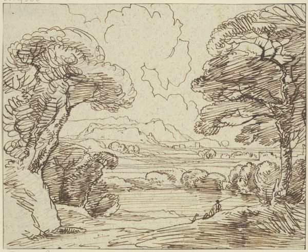 Editor: Here we have Martinus Rørbye’s "Illustration til "Halvhundrede Fabler for Børn" af Hey," created in 1834. It's an engraving, showcasing incredibly detailed line work. I’m struck by its whimsical nature, but also by something a little unsettling. How do you interpret this work, especially given its time? Curator: I'm drawn to how Rørbye positions this seemingly innocent illustration within a larger socio-political context. Remember, 1834 was a period of immense social upheaval, where ideas about childhood and innocence were rapidly evolving, often interwoven with nationalistic and patriarchal narratives. Does this idyllic landscape mask or reflect deeper anxieties about identity, particularly gender identity given the fable context, and Denmark's place in a changing world? The child's disembodied head might symbolize innocence but simultaneously a loss of connection. Editor: That's fascinating, I hadn't considered the broader societal influences. The figure feels a little like a surveillance state? Curator: Precisely. The positioning is crucial; the engraving technique also plays a role, offering a sense of both precision and emotional detachment. Does it invoke Romanticism, but then subtly undermines its grandiosity? What happens when we view the image through the lens of feminist theory, given the absent adult figures and emphasis on a disembodied, vulnerable, albeit central, child-like gaze? Editor: That shifts my perception entirely. The idyllic scene now feels deliberately constructed, perhaps to obscure something. It highlights the importance of viewing art not as isolated objects but within intersecting webs of power and culture. Curator: Exactly. And what can we do with our reading now? It certainly has impacted my perception as well! Editor: Me too. It makes me think about how illustrations, even those for children, are never truly neutral.
