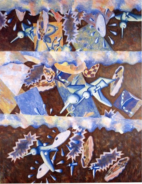 Tsukioka Yoshitoshi created this woodblock print titled Nihon ryakushi. Note how the dominant color, a deep indigo, establishes a somber, almost dreamlike atmosphere. The composition is dynamic, with the hero cutting through the chaos of swirling waters towards a menacing dragon. The jagged lines forming the waves and the flowing robes create a visual rhythm that conveys motion and tension. This print, while illustrative, uses formal elements to explore themes of courage and conflict. The tension between the dark background and the bright, almost ethereal figure of the hero destabilizes a conventional reading. The composition, with its sharp diagonals and contrasting light, creates a sense of unease. Yoshitoshi challenges fixed meanings of heroism, suggesting it is not just physical strength but also a defiance against the unknown. The lasting impact of this artwork is how it uses the visual language of line, color, and composition to create an experience of ongoing tension.