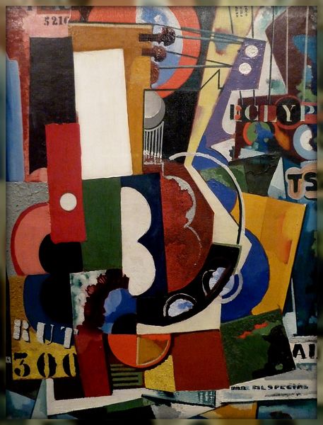 Amadeo de Souza-Cardoso made this untitled artwork with oil paint, and probably some collage bits, in the early 20th century. The colour palette feels both vivid and oddly muted. It's like he's wrestling with how to make these flat shapes suggest depth or movement, and how the process of wrestling is part of the painting. I love the purple rectangle, it might be an adding machine or something? It’s got a bunch of dots, some with numbers in them, that have been painted on with a really juicy brush. The painting feels very material; you can see the texture of the canvas coming through the paint in some areas, and then other areas are built up and layered. It reminds me a bit of Picabia, in that it feels like a machine has exploded, and it's been reassembled by somebody who doesn't understand machines. It's like a puzzle that refuses to be solved, and, in that way, it feels very contemporary.