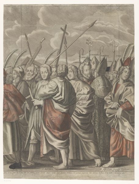 Nicolas de Larmessin's "Triumph of Christ" engraving presents a procession brimming with figures from both the Old and New Testaments. Dominating this spiritual parade is Christ, leading a group of saints and martyrs, each carrying symbols that tell of their faith and suffering. Note how Saint Lawrence carries the grill, an instrument of his martyrdom, a stark reminder of sacrifice. This symbol, like many others here, transcends its immediate context. In ancient Roman art, processions often celebrated military victories; here, Larmessin inverts that tradition, celebrating spiritual triumph over earthly suffering. The procession, a motif that has been seen in pagan and religious practices, is a powerful representation of collective identity and shared beliefs. The emotional power of this image lies in its evocation of shared human experiences of faith, suffering, and triumph, engaging viewers on a subconscious level, reminding us of the cyclical nature of history and the enduring power of symbols.