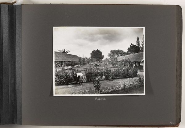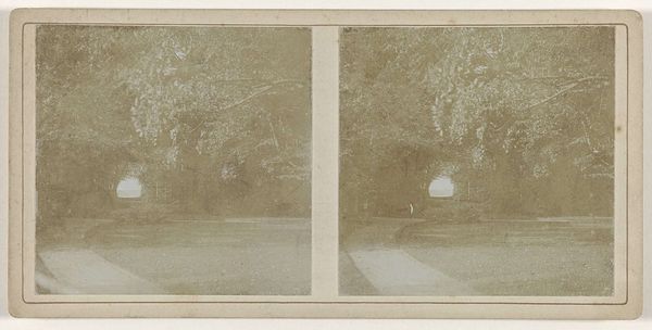 Woodbury & Page created this stereograph of a Traveller's Tree in Bogor, West-Java, using a photographic process that captures two slightly different perspectives of the same scene. The composition is structured by the contrast between the organic forms of the trees and the geometric lines of the wall and buildings in the background. The Traveller's Tree, with its distinctive fan-like arrangement of leaves, dominates the foreground, drawing the eye with its radial symmetry. The texture of the foliage and the rough stone wall provide a tactile quality, while the monochromatic palette emphasizes tonal variations and shadow. The stereoscopic effect enhances the sense of depth, creating an illusion of three-dimensionality that invites the viewer to enter the scene. This work invites contemplation on how photography can manipulate space and perception, offering a constructed view of reality.