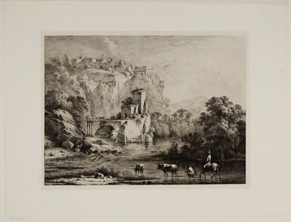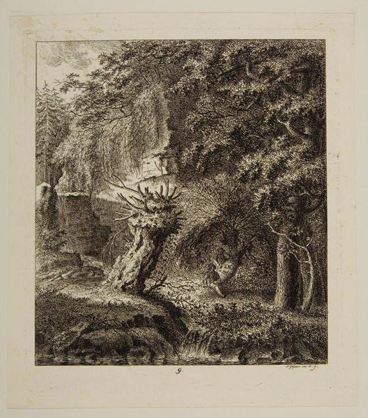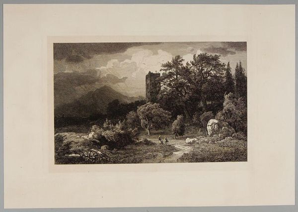 Curator: Alexandre Calame's "A Stone-and-Stucco Hillside House" presents a crumbling structure embraced by nature. Editor: I'm immediately drawn to the contrast; the roughness of the building against the delicate rendering of the foliage. Curator: Calame, a Swiss artist, often depicted landscapes with a romantic sensibility. Consider how the decay in the architecture might mirror societal shifts or individual struggles. Editor: It's the texture that speaks to me. Stone, stucco, foliage – each has unique properties, and Calame captures their tactile qualities through engraving. What kind of labor went into quarrying the stone, mixing the stucco? Curator: Perhaps we see here a commentary on humanity's impact on the natural world, with the house slowly surrendering to its surroundings. Editor: Or, conversely, it's a testament to the enduring nature of materials, adapting and changing over time. This piece makes me think about the labor of craft and the enduring power of the handmade. Curator: It really provides a lens through which we can examine the narratives of place and belonging. Editor: Indeed, a reminder of the stories embedded within the very fabric of our surroundings.