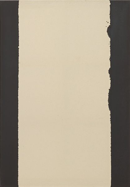 Editor: This is an untitled piece from 1995 by Erik Saxon, made with watercolor and paper. There’s a minimalist feel to it; just a rectangular void in a field of speckled beige. What do you see in this piece? Curator: What immediately strikes me is the tension between the rigid geometry of the inner rectangle and the raw, almost primitive texture of the surrounding field. Think about how the rectangle, so clean and devoid of incident, echoes countless symbols across cultures – doorways, windows, even blank slates for reflection. And the beige? It evokes the earth, antiquity, something aged and almost forgotten. Editor: So, the contrast creates meaning? Curator: Absolutely. The smooth against the rough, the void against the texture… these elements invite us to consider dualities. Perhaps Saxon is prompting a meditation on memory and presence. What fades, what remains? Does the white space feel empty to you? Editor: Not empty, but quiet. It feels like potential. Maybe it's about uncovering something, stripping away the layers to reveal the core. The negative space reminds me of a tomb or archeological dig. Curator: Yes! Layers, excavation... think of how symbols accumulate meaning through time. This work whispers of the past, inviting us to project our own histories and interpretations onto its surface. What symbols or images do you see emerge in that quiet space? Editor: I'm still processing, but now the void is starting to look less like nothing, and more like a form waiting to take shape. Curator: Precisely. And that waiting is where the magic lies. It's not just about what the artist created, but what we, the viewers, bring to the experience. Thanks for your insight.