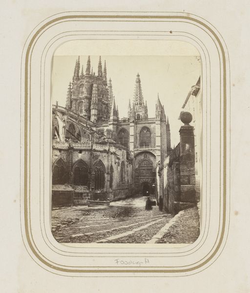 This is a photograph of Bath Abbey, created by J. & J. Dutton. The image captivates viewers through its detailed depiction of architectural grandeur. The structure of Bath Abbey is meticulously captured; note the sharp lines of the Abbey that rise vertically, creating a sense of awe and reverence. The facade’s intricate stonework, detailed with ornate carvings and expansive windows, draws the eye and evokes a sense of historical depth. The subdued monochrome palette enhances the architectural details, allowing the complex interplay of light and shadow to define the Abbey's form. The photograph's composition expertly uses linear perspective. The building not only dominates the scene, but also subtly engages with broader themes of time, place, and memory. Ultimately, this photograph invites us to consider how architectural forms can embody cultural values and how photography can capture not just a visual likeness but also a deeper sense of place and history.
