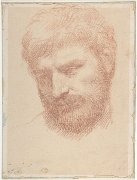 Curator: This is Alphonse Legros' "Head of a Man," a charcoal drawing. The artist captured the profile view in striking detail. What strikes you most about it? Editor: There's a stillness and serenity to the figure, despite the rather unforgiving gaze. The limited color palette focuses my attention on the texture of the charcoal itself and the subject’s very fine features. It almost feels…ancient, monolithic, in its simplicity. Curator: It’s interesting you pick up on that monolithic quality. Legros, along with artists like Poynter and Leighton, pushed for a classical revival within British art education. Consider that the antique, often depicted through drawing, formed a crucial aspect of academic training during that period. This portrait seems to echo that emphasis. Editor: That context explains the figure's slightly detached presence. Technically, I find the hatching remarkable. The artist skillfully creates a sense of volume, especially in the beard, and effectively employs negative space to define the jawline. There is remarkable tonal modulation given the material simplicity. Curator: Absolutely. The emphasis on draftsmanship served an important didactic purpose. Legros taught at the Slade School, so this might be connected to the artistic pedagogies promoted during this period. How did these teachings shape students’ abilities and approaches to representation? What institutional biases may have been subtly reinforced? These are key questions in considering a work like this. Editor: That’s an important consideration. Looking at this strictly in terms of form, the even application of tone makes this a rather controlled portrait. I can appreciate its objective clarity. Curator: Indeed, understanding art demands that we address not just its aesthetics, but the surrounding historical and social dialogues as well. This approach reminds us that artworks were always, and remain, entrenched within these conditions. Editor: A fitting synthesis. The image stands alone with understated intensity but gains richness as we see its historical echoes.