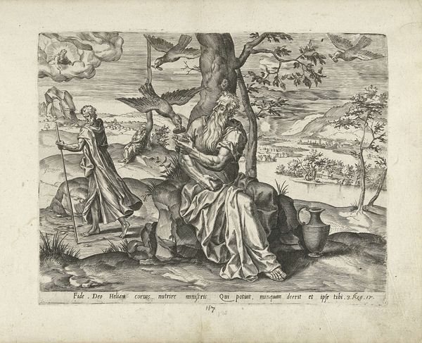 This is a 16th century print of Job on the dung heap by the Monogrammist AI. The composition depicts a scene dominated by linear precision and stark contrasts, characteristic of the printmaking medium. The dense network of lines defines form and texture, creating a rich visual field that oscillates between detail and abstraction. Note how the artist uses hatching and cross-hatching to build tonal depth, particularly in rendering the figures’ musculature and the coarse textures of the landscape. The formal organization presents a study in contrasts with the organic forms of the figures set against the more geometric architectural elements in the background. The semiotic density invites us to decode its visual rhetoric, where each element functions as a signifier within the broader cultural and theological discourse of the time. The artist challenges conventional depictions through a raw and immediate approach to form. Job's figure serves not just as a narrative element but as a focal point, destabilizing established meanings and prompting re-evaluation.