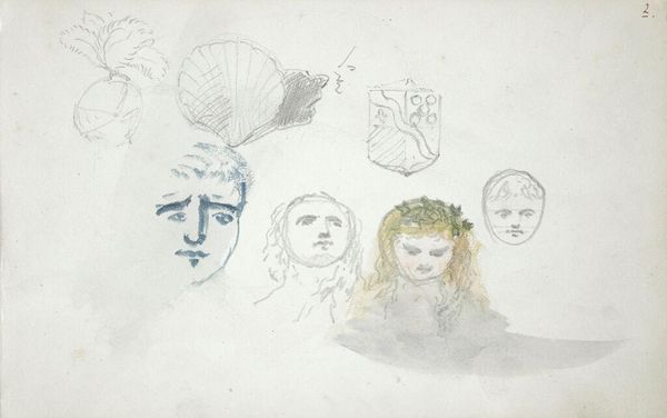 Editor: This sheet of sketches by John Singer Sargent, simply titled "Sketches of Heads; verso: Landscape," is like a peek into his visual diary. It's a whirlwind of faces and fragments. What do you make of this collection? Curator: I see a restless mind at play. Imagine Sargent, notebook in hand, capturing glimpses of people, places, fleeting impressions. It’s not about finished portraits, but about the sheer joy of observing and recording. It’s like catching fireflies in a jar – each sketch a spark of inspiration. Does it give you the sense that he's just trying to quickly capture what's in front of him? Editor: Absolutely. It feels so immediate and personal. I hadn't thought about it that way, but I see now that it’s the artist’s looking that is on display. Curator: Precisely! And perhaps it is about the freedom to be imperfect, too. Every now and then, it is really fun to look at what isn't a finished product.