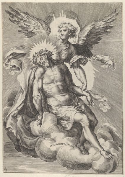 Editor: Here we have "Michael Subduing the Devil," an engraving by Adriaen Millaert, likely created sometime between 1645 and 1668. I'm immediately struck by the dramatic contrast of light and dark and how dynamic it is! What kind of story do you think this image is trying to tell? Curator: Ah, yes. It leaps off the page, doesn’t it? To me, this engraving vibrates with the baroque era’s love of theatrics and religious fervor. Saint Michael, all armored might and heavenly glow, stands triumphant. What captures *my* imagination isn’t just the vanquishing, but the weight of that moment. It’s the point of recognizing ultimate victory, the very embodiment of virtue crushing wickedness – all expressed with the light! But isn't it curious that the Devil isn't the monster you might imagine? What do you think about his humanized face and body? Editor: That’s interesting; it almost looks like the Devil is an ordinary guy in immense pain and torment. So it makes you think about the humanity that's present in darkness? Curator: Exactly! Millaert isn’t giving us a simple morality play, but perhaps inviting us to confront the idea that even darkness carries a shard of something we can identify with, which could add layers to how we percieve good and evil in the artwork, even within ourselves! Editor: It's so thought-provoking. I guess I went in expecting a simple, obvious narrative and am leaving with… well, so much more to consider! Curator: Me too. Each time, there's a feeling I carry in the work for longer afterwards. It isn't so much just *looking* as feeling like it looked *back*.