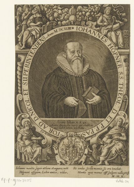 Robert Boissard's "Portret van Heinrich Meibom" was made as an engraving. It offers a window into the cultural and intellectual life of the 17th century. The portrait, framed by ornate designs including cherubs and swans, presents Meibom not merely as an individual, but as a figure of civic and intellectual importance within his community, signified by the inscription highlighting his role as a poet and historian. Boissard, working in the Dutch Republic, a hub of intellectual and artistic innovation, was catering to a market that valued learnedness and public service. The choice of engraving as a medium speaks to the democratisation of knowledge, making the likeness of notable figures like Meibom accessible to a wider audience than painted portraits would allow. To fully grasp the portrait's significance, scholars consult archival materials to better understand the institutions and social networks that shaped Meibom’s world. In doing so, we can better understand the public role of art.