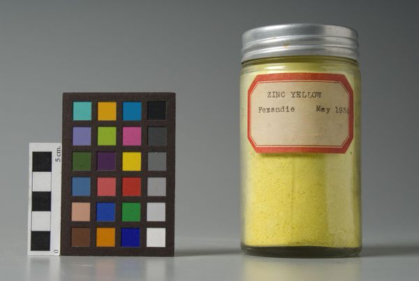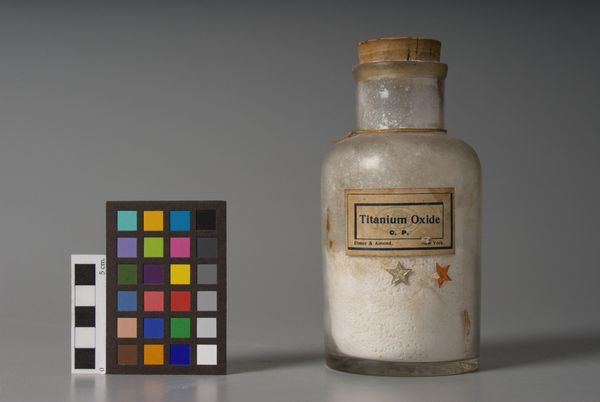Curator: Here we have an interesting find: a jar labeled "Gesso d'Oro," apparently manufactured by Antonio Buonamici. It’s a peculiar object to find in a museum collection. Editor: It's stark, isn't it? The mundane jar contrasts with the promise of "golden gesso" on the label. Makes me wonder about the labor and cultural capital embedded within that name. Curator: Precisely! Gesso, historically, was the foundation for many paintings, particularly for gilded surfaces. Buonamici's manufacturing company produced gesso for some of the world’s most important artworks. Editor: So, in a way, this jar represents the unseen foundation upon which artistic narratives are built. The “golden gesso” hints at the power dynamics within art history, particularly issues of access and value tied to class and gender. Who had access to these materials? And whose stories were deemed worthy of being elevated? Curator: Absolutely. The jar invites us to contemplate the entire artistic ecosystem and its complex relationship to commerce and social status. Editor: It's a reminder that even the most seemingly neutral object can hold a wealth of social and historical significance. Curator: Indeed. This jar really offers a different perspective on art historical narratives.