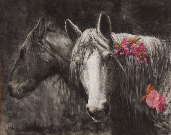 Dragan Ilić Di Vogo made this piece, Neptune, using fluid washes of paint that create both form and ethereal space. The colours, soft pinks and browns, with hints of blues, give the work a dream-like quality. The way the pigment bleeds and merges really pulls me in, its like watching a dance between control and chance, the artist allowing the materials to do their thing. Look at the way the planets sit around the horse, they are painted with such delicate detail, that contrasts with the wildness of the background. Notice the horse's eye, how it seems to gaze into another world? The painting is built up with layers that create depth and texture. Di Vogo’s approach reminds me of Helen Frankenthaler's soak-stain technique, where the canvas becomes a field for colour to play across. Just as Frankenthaler embraced the unpredictable nature of her medium, so too does Di Vogo find beauty in the fluidity and transparency of paint. Ultimately, art is a conversation, where artists like Di Vogo build upon and transform the ideas of those who came before.