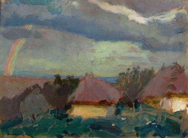 Hélène Guinepied created this oil painting, "The Roofs," using soft, muted colours to depict a landscape with buildings nestled amongst trees. The scene is bathed in an ethereal light that blurs the boundaries between objects, giving it a dreamlike quality. Guinepied’s approach reminds me of structuralist theories where meaning arises from the relationships between elements rather than the elements themselves. Notice how the roofs, rendered in hazy blues and browns, are juxtaposed with the amorphous greens and whites of the foliage. The overall effect is one of harmonious unity. The painting invites us to consider how meaning is constructed through the interplay of form, colour and composition. The lack of sharp definition pushes us to consider the painting not as a representation of a specific place, but as an exploration of space and perception, prompting us to ask whether the structural integrity of the landscape is in fact more profound than its immediate appearance.