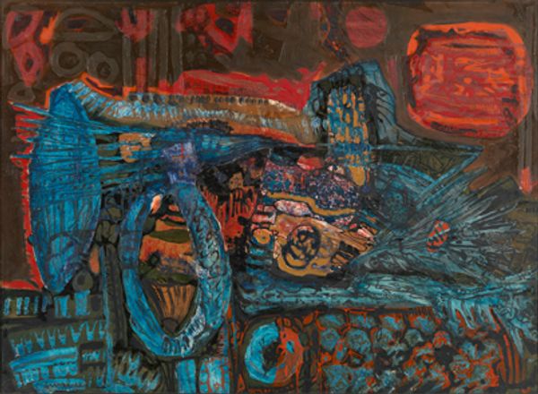 Aboudia created "Cache-cache" using mixed media on canvas. His art gives visual form to the energy and chaos of urban life in Abidjan, Ivory Coast, where he lives and works. Aboudia came to prominence after the 2010–2011 Ivorian crisis, a period of political turmoil and violence following disputed election results. His work captures the raw, unfiltered experiences of children living in conflict zones. The scribbled figures, layered textures, and collage elements evoke the dense, vibrant, and often overwhelming environment of the streets. The faces have a mask-like quality reminiscent of traditional African art. Yet, they reflect the resilience and resourcefulness of youth navigating difficult circumstances. Aboudia doesn't shy away from depicting harsh realities, but infuses his work with a sense of hope. The bright colors and dynamic compositions transform found materials into a celebration of life. His art serves as a powerful reminder of the human spirit's ability to find joy and creativity amidst hardship.