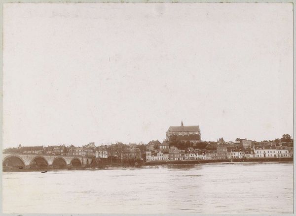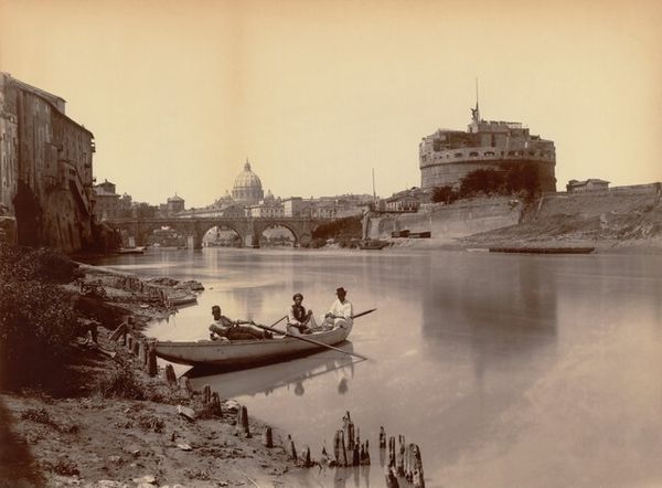 Curator: Eugène Constant’s gelatin silver print, "Ponte e Castel S. Angelo," likely taken between 1848 and 1852, offers a glimpse into 19th-century Rome. Editor: Immediately striking is the contrast in textures; the rough, fortress-like appearance of the Castel against the delicate statuary adorning the Ponte. It gives it such a stark yet poetic aesthetic. Curator: That fortress, the Castel Sant'Angelo, has served various roles throughout history, from mausoleum to papal residence to prison. This speaks volumes about Rome’s layered past. Constant’s work comes when the city was undergoing significant changes, pre-unification Italy and the rise of photographic documentation. Editor: The linearity is so visually powerful; how the bridge and river lead our eye to that imposing structure. Consider the subtle gradations of light—it's romantic and precise all at once. The photographer very deftly employs light here. Curator: Indeed, this photograph not only serves as a document but it's a demonstration of photographic advancements, and is influenced by the styles that would shape later documentary approaches. We also ought to consider the emergence of art criticism at this time which encouraged photographic series such as these as valid art pieces. Editor: There’s a delicate melancholy imbued in the soft greyscale. It creates an enduring historical monument that offers a distinct sense of stillness that only an antiquated print could produce. Curator: Viewing it through the lens of realism, the city, captured amidst broader societal changes, exemplifies Constant's pursuit to capture the temporal realities in the 19th century. Editor: It is more than just a scene of a famous Roman vista; it is also an expertly rendered work with careful choices made about composition and mood. Curator: It’s also a stark commentary of history made physical through structural monument. A true document to behold that reflects upon its present. Editor: Inarguably the photograph compels us to connect with an evolving visual past.