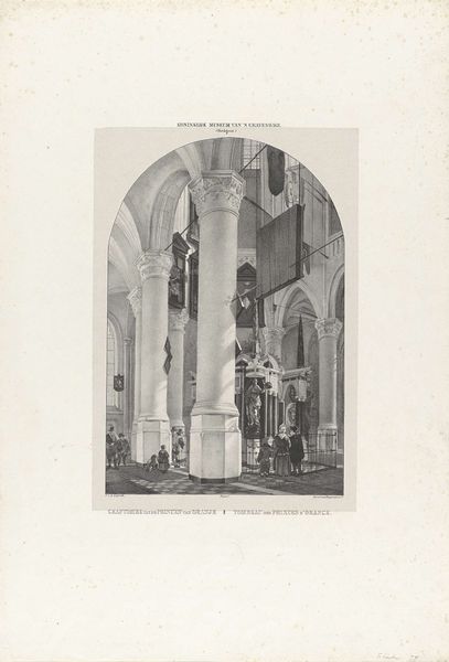 Curator: Welcome. Today, we're looking at Johannes Bosboom’s "Kerkinterieur met spreekstoel," created sometime between 1827 and 1891. It’s currently held here at the Rijksmuseum, rendered in ink and print. Editor: My initial reaction is one of muted grandeur. The soaring architecture, the muted palette – it all speaks of a society rigidly structured. There's a stillness that feels almost oppressive. Curator: Yes, Bosboom was masterly at capturing architectural space. Notice the artist’s acute attention to line, the converging orthogonals and the diminishing scale creating a convincing illusion of depth. It draws your eye upward. Editor: Absolutely, and this deliberate use of perspective, focusing on the pulpit, is very telling. It's hard not to think about power structures—who is given a voice and who is not within these hallowed halls. How might this scene have played out for marginalized figures within the congregation? Curator: You bring up an important point, as Bosboom, characteristic of his era, creates a narrative through contrasting light and shadow. Observe how light delicately filters through the arched windows, illuminating some parts of the church while others recede into darkness, lending an atmospheric effect. Editor: These chiaroscuro techniques add drama, yes. But I also think about how easily historical narratives, much like shadows, can obscure uncomfortable truths if we aren't actively looking for them. What was the religious landscape in the Netherlands during Bosboom's time? Who was being excluded or othered in these spaces? Curator: His contemporaries appreciated the geometric precision and delicate tonal rendering, which elevated topographical work into high art. His technique reflects an engagement with architectural integrity as an aesthetic quality. Editor: Technique and aesthetics cannot exist in a vacuum. What narratives were supported by such art at the time, and which were suppressed? I think by asking these questions, we challenge the viewer to question how we choose to create and to look at art. Curator: Ultimately, regardless of your interpretive bent, the drawing serves as a keen exemplar of Bosboom's talent as a draughtsman, meticulously capturing space and light. Editor: True, but the image can prompt meaningful conversation about both visual structures and sociocultural narratives, prompting a much richer reading of the artwork.
