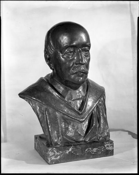 Editor: This is Julia Bracken's relief sculpture of Gustavus Goward. It's a somber portrait, isn't it? How should we interpret this kind of commemorative piece? Curator: Well, these reliefs often served a public function, immortalizing figures within institutions. Notice how Goward is framed by classical motifs. What does that suggest about how he was viewed by the institution commissioning the work? Editor: That he was a figure to be revered, I guess? Like a Roman emperor or something? Curator: Precisely. And think about the politics of representation. Who gets memorialized, and what values are being promoted through their image? These choices reflect a specific power dynamic. Editor: It's interesting to consider who gets remembered and why. Thanks! Curator: Indeed. It prompts us to ask, whose stories are missing from these halls?