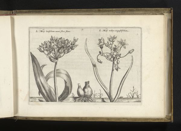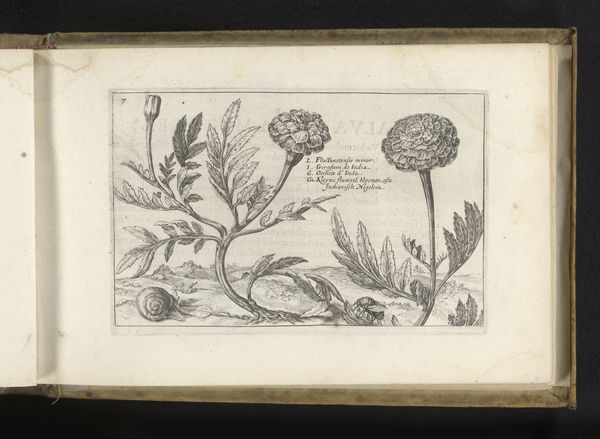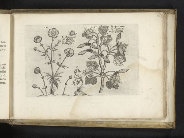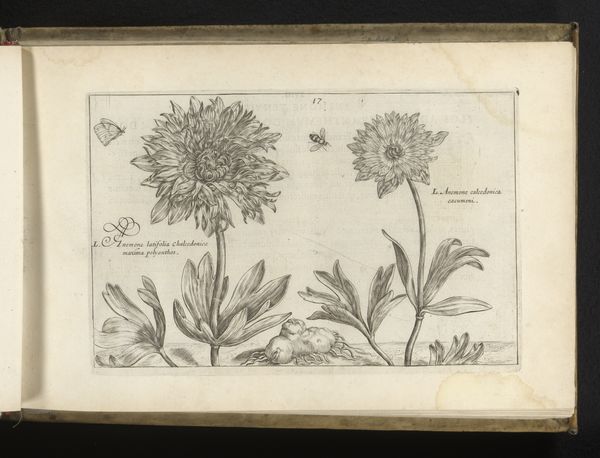Curator: Our attention is drawn to a striking engraving from 1617 by Crispijn van de Passe the Younger. It’s currently held here at the Rijksmuseum and titled, "Madeliefje (Bellis perennis) en moederkruid (Tanacetum parthenium)," which translates to "Daisy and Feverfew." It’s rendered in ink on paper, displaying a Northern Renaissance sensibility. Editor: The immediate impact is its exquisite detail, wouldn’t you agree? The textures, though monochromatic, feel almost tactile. And there is something delicate and refined about it, a contemplative stillness that’s almost meditative. Curator: Absolutely. Van de Passe situates his botanical subjects within a visual language that blends scientific observation with humanist ideals. This was a time when understanding the natural world was both a philosophical pursuit and a practical necessity. These plants, like so many others illustrated during this era, had known medicinal properties. Editor: So, is it primarily an act of observation then? The almost hyper-realistic portrayal feels like more than simple replication; it transcends objective accuracy. What I’m seeing here is not simply a factual representation, but it has been refined, stylized, using line, tone, and form, to extract the aesthetic core of the plants. It’s as much a testament to the power of artistic rendering as it is a scientific illustration. Curator: It definitely speaks to a shifting cultural context, wouldn’t you agree? These botanical studies frequently acted as visual resources within a period characterized by global trade and colonial expansion. To examine this from an eco-critical lens, how might the portrayal of flora embody colonial ideology and the imposition of European systems? The control and documentation of plants were tied into the broader project of resource management within asymmetrical global power dynamics. Editor: And yet, focusing purely on form and its own compositional logic offers so much—the balance of positive and negative space, the deliberate modulation of light through precisely laid engravings, the implicit movement communicated in the stems… There's an intrinsic harmony within these choices, an almost musical counterpoint between these two different plant specimens. Curator: Indeed, the tensions between historical forces and aesthetic values underscores the layers within it. What emerges from our dialogue is the multifaceted resonance, capturing at once, the botanical precision of the 17th century alongside the aesthetic composition and cultural framework of that moment. Editor: I agree. The convergence of formal analysis and socio-historical perspective provides such enriching insight.
