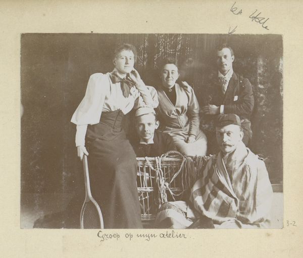 Editor: This is "Groepsportret van de familie Piek," taken sometime between 1889 and 1893. It's a photograph, so one of the earliest forms of mass visual communication. What's striking to me is how posed and formal everyone looks. How do you interpret the family dynamics at play here, given the time period? Curator: I see this photograph as a visual statement about the burgeoning middle class at the close of the 19th century. Photography, then, was a powerful tool for crafting identity and communicating social standing. It was costly; consider what it meant for the Piek family to mobilize and present itself in this way. What stories do their clothes tell you? Editor: Their clothing appears uniform; it conveys conformity and status, perhaps? But what I can't figure out, is if their seriousness suggests anxiety, pride, or something else entirely. Curator: Exactly! The seriousness reflects a desire to be seen as respectable and dignified. The photograph’s composition speaks volumes about the era's social codes, gender roles, and performative identity. The men bookend and seemingly protect the women, doesn't it strike you? What do you think that says? Editor: Yes, the staging clearly conveys that idea! I hadn’t thought of photography in terms of performativity. This photo creates so many complex social statements, like control. It has this air of permanence and the artificial at the same time! Curator: Precisely! We must be mindful that this wasn't just documentation, but deliberate construction. By critically analyzing it, we gain insights into social and power dynamics of that era and recognize threads that resonate today. I wonder, could the act of taking family portraits back then be a way of dealing with change? It can show how, despite constant flux in our environment and culture at large, we find ways to feel grounded through tradition! Editor: I hadn't thought of that connection; what I like best, perhaps, is to understand its link with contemporary identity representation! Thank you for offering these insights!