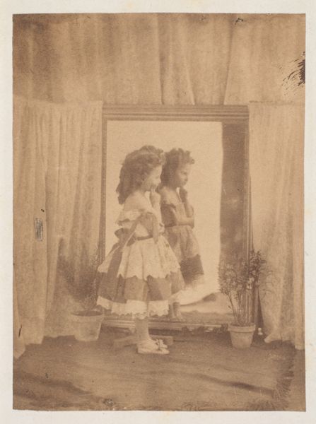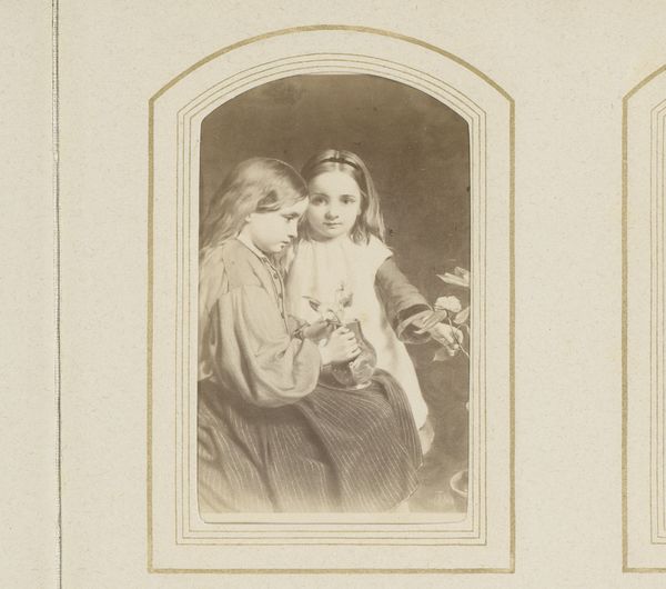 This small card, 'Pixie and Dido, from the Actresses and Celebrities series', was manufactured by Allen & Ginter, using photographic and printing techniques that were advanced for their time. The photographic image would have been captured on a glass plate negative, and then printed in multiples onto light-sensitive paper. A key feature of this artwork is its role as a promotional item. Inserted into packs of Allen & Ginter cigarettes, the cards were designed to entice consumers with images of popular actresses and celebrities. The 'Little Beauties' series, of which this card is a part, suggests a focus on child performers, tying into Victorian notions of innocence, domesticity, and, of course, consumerism. Consider the labor involved in the production of such an object: from the cultivation of tobacco, to the manufacture of cigarettes, to the printing and distribution of these cards. The commodification of childhood, through entertainment and advertising, raises complex questions about value, labor, and the ways in which cultural figures are produced and consumed.