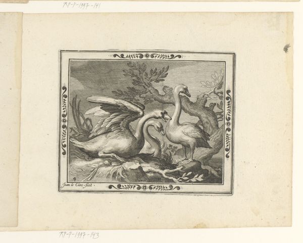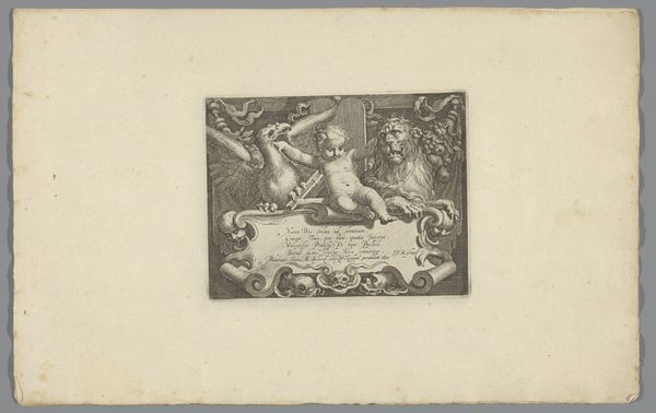Curator: Here we have Jean Leclerc's "Annunciation to the Shepherds," an engraving dating from between 1597 and 1633. It’s currently held here at the Rijksmuseum. Editor: My immediate impression is one of dramatic contrasts—a stark chiaroscuro effect combined with what feels like an intentionally rustic subject matter. There's a very specific aesthetic tension that immediately grabs my attention. Curator: Indeed. Look at the framing; this isn't merely an image, but a printed object intended for wider consumption. We need to remember that engravings like this played a crucial role in disseminating imagery and narratives during this period. Consider the labor invested in creating these plates. Editor: Absolutely, and the narrative is so charged, steeped as it is in religious and cultural significance. How were images of this type deployed? For personal devotion? Public education? Political statements? It is fascinating to consider. And note how the humble shepherds and their flock are given prominence, juxtaposed against the radiant angels. It seems calculated. Curator: Precisely. The printmaking process itself allowed for the standardization and distribution of such ideological messaging, extending the reach of the church. Let’s look closely at the materials - the paper, the ink. The level of detail Leclerc achieved is also important. Editor: Agreed, Leclerc harnessed those limitations to convey dramatic lighting and textural complexity through the print's linear structures, particularly when evoking celestial emanations. Also notice the border details that frame the scene, like a theatrical stage, drawing the viewer in to this historical drama. Curator: Examining this through the lens of art’s production opens a view to the socio-economic landscape of the time. I am left wondering about the cultural implications that engravings allowed, specifically. Editor: Exactly, and to reflect on that tension between art object, mass communication, social instrument, and its endurance in collections such as this! Thank you.
