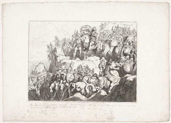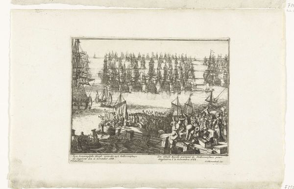 Pieter Pickaert etched this print of Prince William III's arrival in England in 1688, capturing a pivotal moment with potent symbols. The orderly rows of ships in the harbor and the linear procession of nobles are emblems of power and the controlled transfer of authority. Consider how the rigid formations echo the Roman military parades depicted on triumphal arches. Here, the imagery has shifted from conquest to a more tempered, political negotiation. The flags and banners, reminiscent of ancient Roman vexilla, are repurposed, now representing national identity and allegiance. Yet, beneath the surface of order, the collective excitement hints at underlying tensions. The subconscious desire for stability clashes with the volatile nature of political change. Even the most carefully staged processions cannot fully mask the anxieties inherent in such transitions of power. These symbols, passed down and re-contextualized, reveal that history does not march in a straight line but rather in a cyclical dance of recurring motifs.