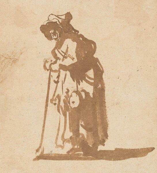 Harmen ter Borch created this drawing with pen in brown ink, now held at the Rijksmuseum. Notice the visual weight of the two men carrying what appear to be heavy baskets. This motif of burden-bearing echoes through art history, evoking ideas of labor, sacrifice, and the weight of human existence. Think of Atlas, bearing the world on his shoulders, a classical archetype symbolizing endurance and the struggle against overwhelming odds. Observe the woman in the center, cradling a child, a universal Madonna figure. The tenderness and vulnerability of the mother-child relationship is a recurring theme, embodying hope, protection, and the continuity of life. The image of a mother holding a child speaks to the deepest emotions and instincts. These figures, frozen in time, connect us to the cyclical nature of human experience, reminding us that these archetypes are continually re-enacted across time.