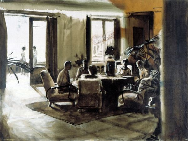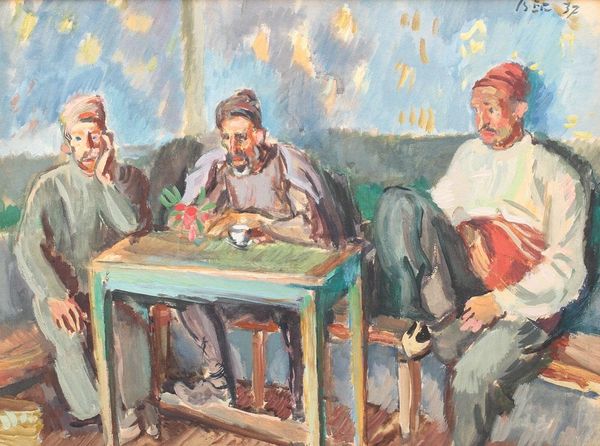 Nicolae Darascu painted “Mamut’s Café” using oil on canvas. Darascu was a post-impressionist Romanian painter, who traveled extensively throughout his life. His experience of the world, particularly his time spent in France, shaped his artistic style and approach. “Mamut’s Café” depicts a humble interior space populated by figures who seem lost in thought. The clothing they wear suggests the cultural context and social identities of the individuals portrayed, inviting us to reflect on class and cultural dynamics within this intimate setting. There is an emotional weight in the silence of the scene. Darascu’s painting serves as both a depiction of a specific time and place, as well as an exploration into the everyday life and identities of its subjects.