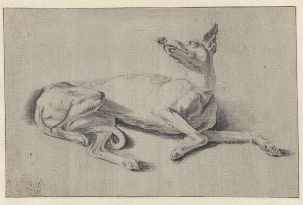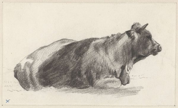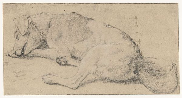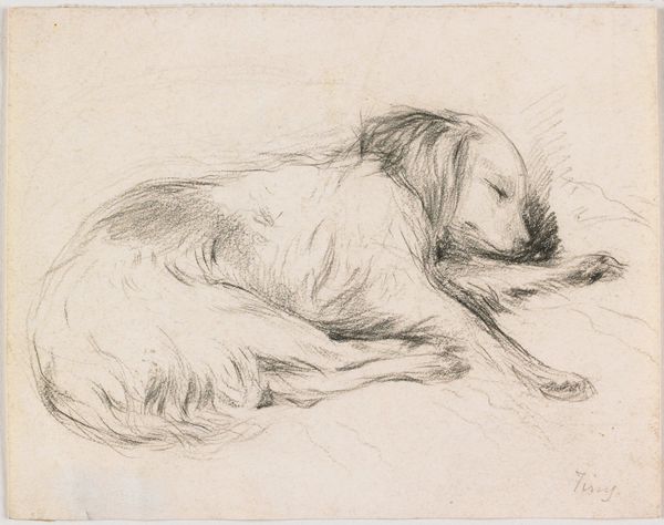 Editor: We're looking at "Reclining Lion, From Back," a graphite drawing made around 1816 by Edwin Landseer, now residing at The Art Institute of Chicago. There's a quiet stillness to this drawing. It's a very detailed depiction of the animal, almost sculptural in its form, yet it still manages to capture something of its interior life. What do you see in this piece? Curator: For me, it's all about the curl, isn't it? The curl of the lion's body suggests slumber and peacefulness, that inherent sense of royalty just switched off for a time. I'm captivated by how Landseer uses graphite to create this tactile quality – I can almost feel the rough texture of his mane, even without the colours or physical sensation. It reminds me a bit of my old tabby, Clementine. Always imperious, unless napping. Do you think it has any romantic notions or symbols of royalty for the artist? Editor: Well, lions are often seen as symbols of strength and majesty, especially within the context of Romanticism. Landseer was only a teenager when he made this, wasn't he? Do you think the drawing also plays on that romantic vision? It has almost photographical details. Curator: Absolutely! I wonder, then, what Landseer wanted to convey? Was it a study of power in repose, a quiet subversion, perhaps? Or even a comment on man and beast's interconnectedness? It feels very grounded, though the subject is usually a grandiose, epic creature. Did that initial realism serve only for him to get past what was generally accepted for its symbolism, if any? Editor: It's funny how a simple drawing of a reclining lion can open up all these lines of questioning! I will certainly reconsider this in new ways! Curator: Me too! I'm going to name my next tabby Edwin! It has been quite fun speaking with you!