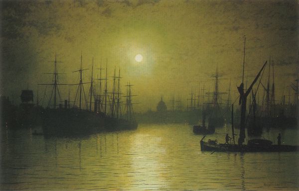 John Atkinson Grimshaw made this painting of Waterloo Bridge, London, looking east, in the late 19th century. It depicts a nocturnal view of London’s industrial Thames, shrouded in a smoky, green-tinged atmosphere. The painting’s meaning emerges from its cultural and historical context. Made in an era of rapid industrialization, the painting romanticizes the urban landscape, even as it acknowledges the effects of pollution and industrial labor on the city. The painting shows the famous architecture of the city alongside the tools of maritime labor, capturing a key moment in the transformation of London’s commerce. Grimshaw's stylistic choices – the soft lighting, muted colors, and careful attention to detail – reflect the influence of the Aesthetic movement, but the painting also shows the reality of London's working river. Art historians use a range of resources, from census data to art market histories, to understand the complex interplay of social conditions and artistic production. Paintings like this help us reflect on our changing relationship to the built environment.