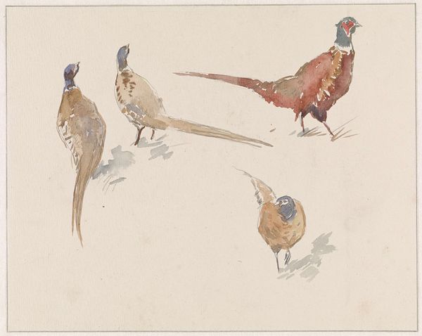 Henriëtte Ronner-Knip rendered this watercolor study of an owl and two golden orioles during the mid-19th century. Ronner-Knip navigated the male-dominated art world by specializing in animal paintings, a genre considered less prestigious than history painting or portraiture. Known for her detailed and lifelike depictions of animals, Ronner-Knip's work reveals a deep understanding of her subjects. Here we see her technical skill through the delicate rendering of feathers and the birds’ anatomies. Consider how the positioning of the birds, some inverted or fallen, evoke mortality and vulnerability. These aspects might have resonated with the artist, as her career coincided with evolving social attitudes towards women. While celebrated for her naturalism, Ronner-Knip's work transcends mere representation, inviting reflection on the relationship between humans and the natural world. Her choice to focus on the intimate lives of animals can be seen as an act of subtle resistance, claiming space for female perspectives.