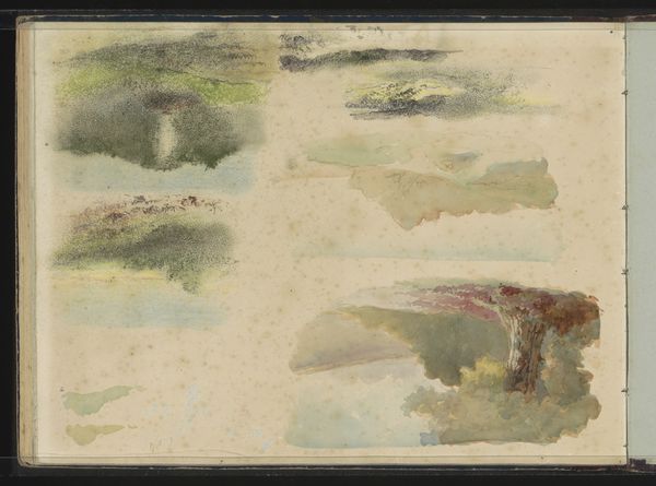This is a study by Johanna van de Kamer, made with watercolor on paper. Look at the way she's laid down these delicate washes and concentrated strokes, it feels so immediate, like capturing a fleeting thought. The ochre wash that dominates the right side feels like a field of light, hazy and undefined, but full of potential. Then, these almost botanical marks on the left. See how the drips and bleeds of the watercolor create this lovely organic texture, like the lifeblood of the image seeping through. I keep coming back to the way these elements are set up in direct contrast to each other. It reminds me of Morandi’s still lifes, the way he could turn everyday objects into these profound meditations on seeing and being. Like Morandi, Van de Kamer embraces uncertainty, inviting us to look closer and see what emerges.