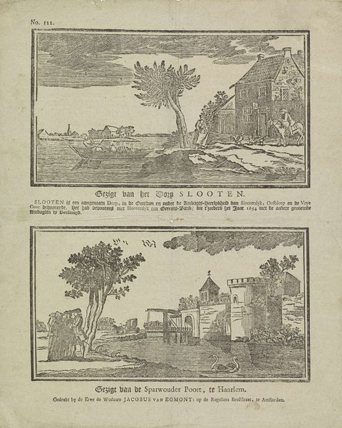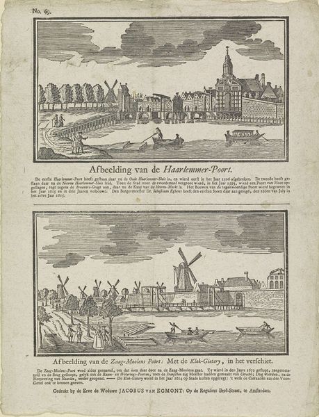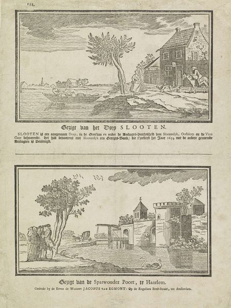 This print by G.N. Garama captures two contrasting scenes of the Buyten Amstel. Note the structured diptych of summer and winter. The top panel shows a summer scene, with its bustling waterway framed by detailed buildings and lush foliage. Below, the winter scene offers a stark contrast, depicting figures skating on a frozen canal bordered by bare trees and snow-covered buildings. The composition of each panel uses strong horizontal lines to guide the eye. The summer scene emphasizes depth through linear perspective, leading towards a distant cityscape punctuated by windmills. In contrast, the winter scene is dominated by a network of diagonals formed by the skaters and frozen canal. This creates a dynamic, almost dizzying sense of movement. The print's aesthetic lies in its meticulous detailing. The artist creates texture and depth through dense hatching and cross-hatching techniques, typical of engravings. This artwork presents a fascinating structural dialogue between the seasons, reflecting broader cultural ideas about nature and the human relationship to it.