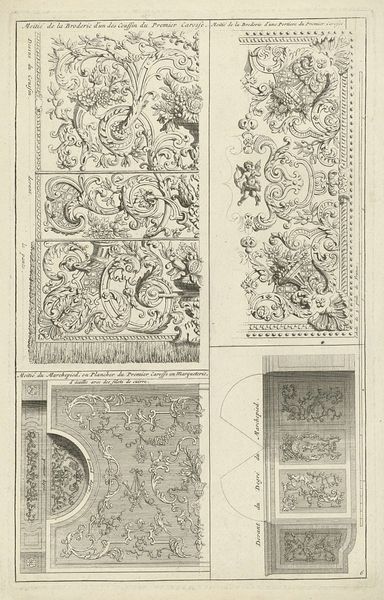 This is an undated engraving of a ceiling quarter with decorations by an anonymous artist, now held in the Rijksmuseum. The composition immediately strikes us with its baroque extravagance; a complex interplay of scenes, frames, and allegorical figures compete for our attention. The artist meticulously delineates distinct zones. Note the crisp geometry of the framing elements. These sections are contrasted against the riotous forms within, particularly the crowded celestial scene. The artist uses line and density to create depth, drawing the eye upward towards the heavens. The structure implies a hierarchy, with heavenly ascension framed by earthly narratives. Consider how the artist negotiates the tension between ornate decoration and thematic storytelling. The rigidity of the architectural lines contains and channels the fluidity of the figures, creating a visual discourse between order and chaos, divinity and humanity. This engraving is not just a picture; it's a structured argument about space, power, and perception.