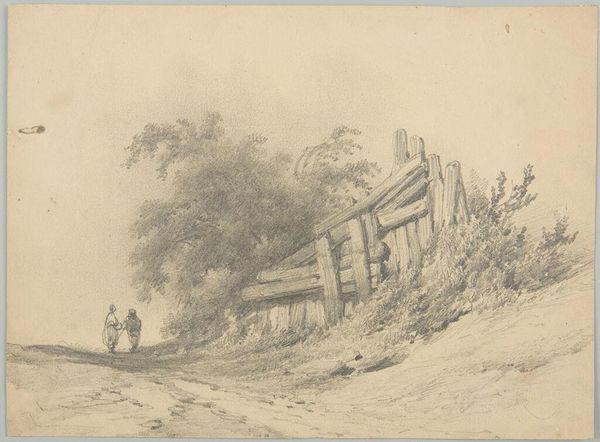 Editor: Here we have John Singer Sargent's "Landscape; verso: Sketches of Cows," an undated drawing. There's a quietness to this scene, but also a dense, almost overgrown feeling. What stands out to you? Curator: It's interesting you mention the density. Sargent, despite his reputation as a society portraitist, often engaged with landscapes that spoke to changing social perceptions of nature. Do you see any signs of human impact here? Editor: Yes, the stacked logs toward the right. It seems at odds with the wilder foreground. Curator: Precisely. The juxtaposition invites us to consider the evolving relationship between human industry and the natural world, themes gaining prominence in the late 19th century. Sargent offers a glimpse into a landscape being actively shaped by these forces. Editor: That gives me a lot to think about, seeing how art reflects bigger changes in society. Curator: Indeed, and hopefully it helps us appreciate how artists like Sargent responded to their times.