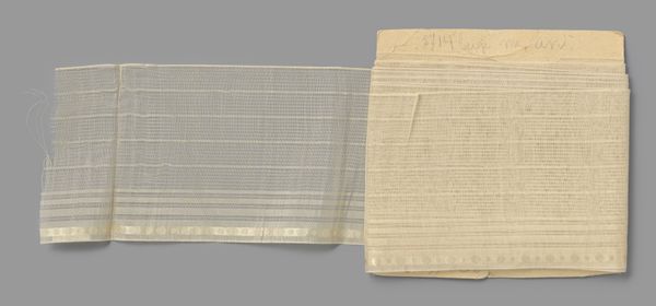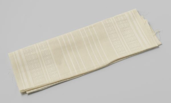 This is a coupon of parasol cotton with beige stripes on either side, made by Gustav Schnitzler. The first thing that grabs me here is the softness of it, this isn’t a harsh pattern, it’s a quiet one. It's a whisper of design, an exercise in close-valued shades, perfect for blocking out sunlight. The texture is everything; you can almost feel the give of the cotton, how it might crease and fold. There's something deeply satisfying about the precision of the stripes, offset by the subtle weave. Notice the detail in the beige stripes. They’re not solid, but patterned with these tiny shapes - squares maybe? It’s this kind of intricacy that elevates it. Cotton like this reminds me a little of Agnes Martin, how she worked with repetition and subtle variation. Both artists, in their own ways, show us that less can indeed be more. It’s a reminder that art isn’t always about making a big statement. Sometimes, it’s about finding beauty in the everyday, in the quiet moments, in the gentle patterns that surround us.