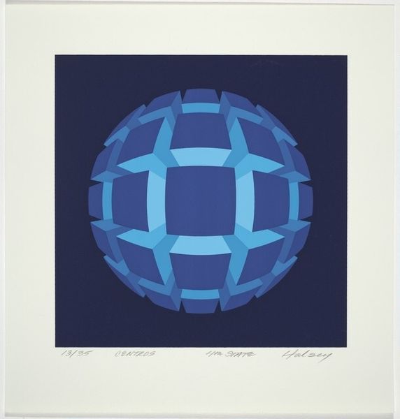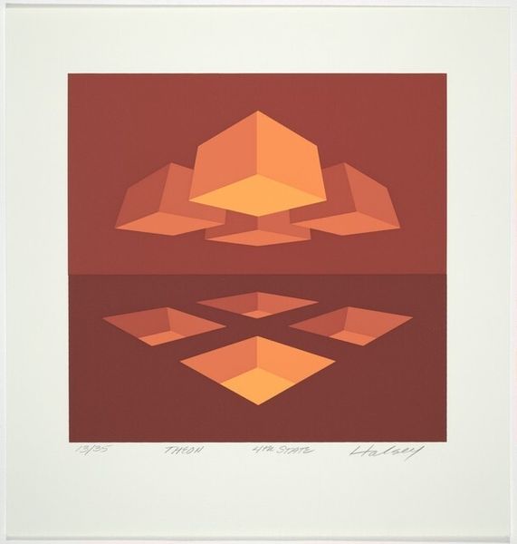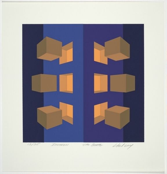 Brian Halsey created "Nucleod" in the 20th century with ink on paper, an abstract exploration of form and space. The composition is dominated by geometric shapes of earth tones, precisely arranged within a circular boundary. Notice how Halsey employs an almost mathematical rigor in the arrangement of cubes. The warm colors create an inviting optical pull and the layering suggests depth. The artwork, with its interplay of positive and negative space, invites a semiotic reading. The title "Nucleod" suggests a central core around which elements are structured, hinting at themes of order and organization. The receding cubes destabilize our spatial perception by creating a tension between two and three dimensions. The composition also presents a poststructuralist view, where meaning is relational and depends on the structured arrangement of elements. The structured harmony of "Nucleod" challenges the viewer to question how visual forms can convey complex ideas about structure, space, and perception. The image, through its interplay of form and color, invites us to consider art as an ongoing process of decoding and interpretation.