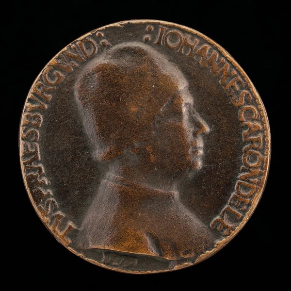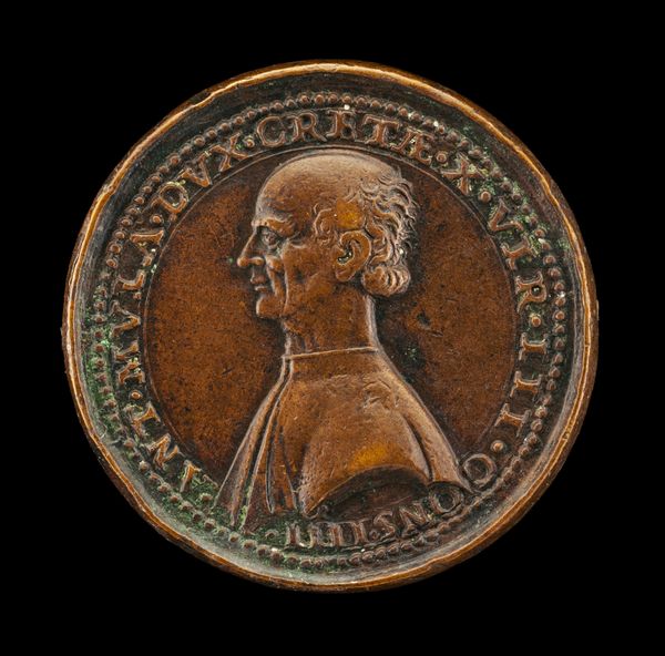 Curator: Looking at this medal cast in bronze, dating from around 1667 to 1682, by Girolamo Paladino... my immediate reaction is one of tactile curiosity. Editor: Oh, absolutely! It begs to be held. I want to feel the weight of it in my palm. There's something so permanent about a portrait rendered in metal. Like capturing a soul, but in such a tangible way. Curator: Right, Girolamo Paladino immortalizes Pope Julius II in profile on its obverse. The detail achieved here, even at this scale, is quite striking. Notice the elaborate detailing in his papal vestments. Editor: It makes you consider the craftsmanship—the molds, the molten metal, the sheer labor involved in replicating these portraits. Who was tasked with this work? What were their lives like? The production is inseparable from the image, really. And look closely at that inscription, Iulius. Ligvr. Papa. Secundus. The whole enterprise whispers power and propagation. Curator: The portrait is interesting – and so serious! I find it incredibly evocative. Medals like this also were meant to be disseminated and I wonder how holding an image, like a seed, helped perpetuate this view of the Pope? Editor: It makes you consider who consumed these objects. What were the social mechanics, the transactions and display rituals tied to this bronze papal image? It reminds you that this wasn’t solely “art” but also political matter. Curator: Perhaps the very point, in the end, and I think that's something to keep with you. Thanks. Editor: Thank you too. It’s been fascinating to examine the cultural forces that have shaped the perception of art, labor, and the image we find displayed on that enduring circle of bronze.