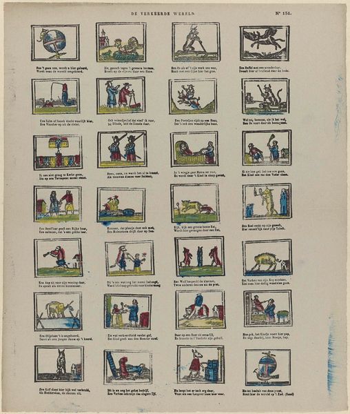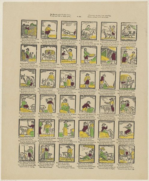Editor: This is "Kinderoefeningen / Exercices d'enfants" by Franciscus Antonius Beersmans, made sometime between 1866 and 1902. It looks like an engraved print depicting different children’s games. What historical context might be influencing this work? Curator: Looking at this piece, it’s important to consider the rise of the illustrated press during the 19th century. Woodcuts and engravings like these made images widely accessible to a growing middle class. It begs the question: who was the intended audience for these "children's exercises?” Editor: So, these weren't just artistic expressions, but also potentially educational or even moral tools aimed at families? Curator: Precisely. Consider how these scenes construct childhood itself. Are they idealized? Are there social norms being reinforced through these seemingly innocent games? The illustrations project behaviors society expects children to emulate in public spaces. Editor: It's interesting how many of these scenes show kids interacting with adults, or mimicking adult activities. Were they subtly teaching children their roles in society? Curator: That's definitely part of the equation. Furthermore, notice how uniform and orderly these vignettes are. Do you think that represents something about the way childhood was being viewed or controlled during this period? Editor: It seems like there was a societal effort to both cultivate and standardize children. Now I look closer, I see how artificial and constructed these simple actions seem, presented as an exemplar of ‘child’s play’. Curator: Indeed. These weren’t just innocent games. They were embedded within specific social and political structures. Art like this helps us unpack the complexities of a bygone era. Editor: It's incredible to think about the hidden layers within something that appears so simple on the surface. I will always ask about art’s socio-political agenda from now on.