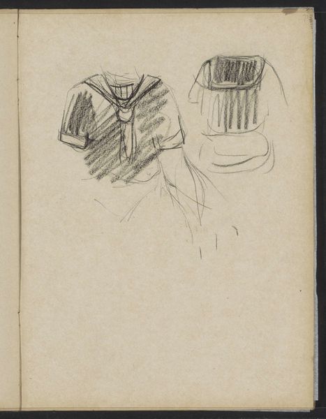 Curator: Looking at this evocative sketch, I immediately feel a sense of quiet observation. The soft pencil strokes suggest a fleeting moment, capturing the essence of the subject without imposing rigid definition. What are your thoughts? Editor: Before us is "Vrouw met hoed," or "Woman with Hat," a pencil drawing on paper created around 1882 by George Hendrik Breitner, now housed in the Rijksmuseum. It invites consideration into how visual symbols can function across time. The hat itself speaks volumes. Curator: Absolutely, the hat as a symbol of status and femininity is a starting point, but I also think we need to consider the specific social and political context of the late 19th century in Amsterdam. How might this woman's social standing influence her agency? The angle feels so transient and quickly captured; to me, it communicates a sense of modern urban life at that moment in history. Editor: It is so minimal, isn't it? And yet that rapid notation lends itself to multiple meanings and associations. Notice the vertical element alongside her portrait — the shading almost invokes the column of a classical sculpture fragment, speaking to ideas of antiquity and enduring aesthetic codes. Curator: Yes, I agree; the visual language employed really pushes the piece to operate across these seemingly contradictory points. What I also find compelling is how the sketch lacks certain details. It's suggestive rather than explicit, which gives it an immediacy, like street photography that brings up broader narratives around class, urban alienation, or the construction of modern feminine identity. How might our contemporary understanding shift through such lens? Editor: Indeed, the lack of detailed rendering allows the viewer to participate, projecting personal experience and memories onto the image, even cultural myths about feminine ideals. One could read into it messages about transience, but even a certain form of cultural expectation regarding representation. I mean, what even defines representation now? Curator: I think exploring the ambiguities in Breitner's work is incredibly pertinent to thinking through how we engage with portraiture now. It is less about celebrating a privileged figure, and more about the act of viewing, of historical awareness. The pencil allows such versatility in terms of shading or clarity, something painting can also deliver but is much more time-intensive, to this effect. Editor: So, this drawing acts almost like an aide-memoire. The object almost embodies memory, and perhaps speaks about both cultural loss and adaptation. Curator: Yes, it pushes me to explore how these objects help challenge the construction of historical narratives by addressing these gaps in information! Editor: For me, considering how those shapes resonate visually and thematically offers fascinating and productive discourse across time. It is about both the real and perceived.