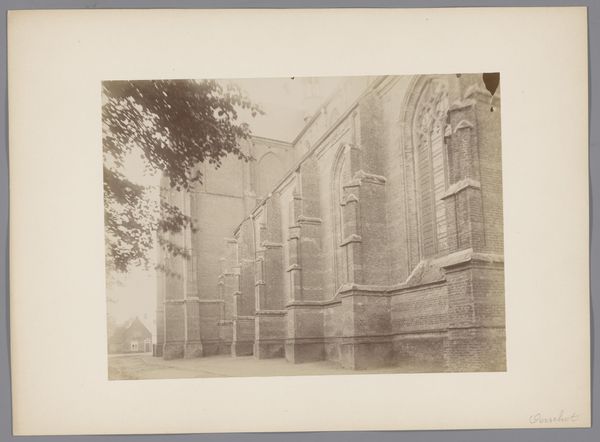 This anonymous photograph captures a section of the Sint Walburgiskerk in Zutphen. The image, produced by Monumentenzorg, likely served a documentary purpose, recording architectural details of the church. Consider the role of institutions like Monumentenzorg in shaping our understanding of historical sites. The photograph, with its stark depiction of the church's exterior, invites us to contemplate the cultural and religious significance of such buildings in Dutch society. Churches like Sint Walburgiskerk were not just places of worship; they were also centers of community life, reflecting the social and political dynamics of their time. By studying historical records, architectural plans, and social histories, we can gain a deeper understanding of the church's role in Zutphen and the broader context of religious life in the Netherlands. Art, in this sense, is a product of its time, shaped by the institutions and social forces that define it.