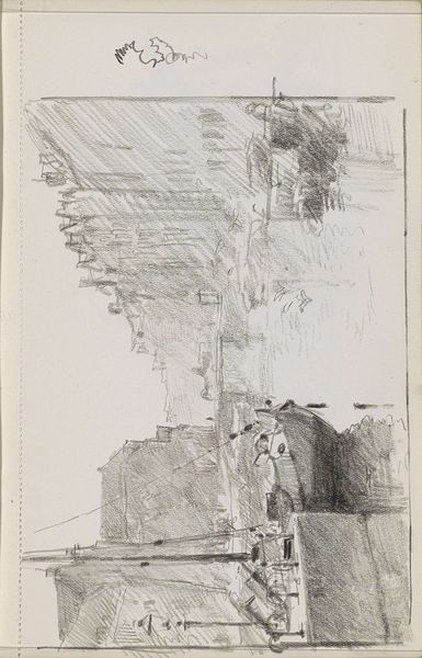 Editor: So this is a drawing, "Woman with a Broom," in ink on paper. It's really striking. The black and white contrasts create a dramatic, almost oppressive mood. I am interested in your opinion about this work. What’s your read? Curator: Well, first off, this resonates with me deeply in light of today's climate crisis. Looking at this landscape, particularly with the woman wielding a broom, prompts questions about labor, environmental responsibility, and even displacement. It’s not just a scene, it’s a commentary. How do you think the artist positions the woman in relation to the ravaged landscape? Editor: I suppose she’s placed there in the midst of desolation and destruction. Do you read the broom as a sign of futile effort? Curator: Perhaps, or maybe resistance? The woman's labor is situated against this backdrop of apparent ruin; perhaps it becomes a metaphor for gendered labour rendered invisible and undervalued in the face of overwhelming environmental and societal issues. Does this strike you as overly political? Editor: No, not at all. Now that you point it out, there's a certain strength in the figure, despite the setting. Curator: Exactly. This interplay is crucial, inviting us to consider who is tasked with cleaning up messes – both literal and metaphorical – and whose stories are often erased. Editor: This definitely made me consider aspects of the piece that I hadn't before. I saw a sad landscape at first but, in that light, maybe it's something a bit more hopeful. Curator: Precisely, and hopefully leads to conversation.
