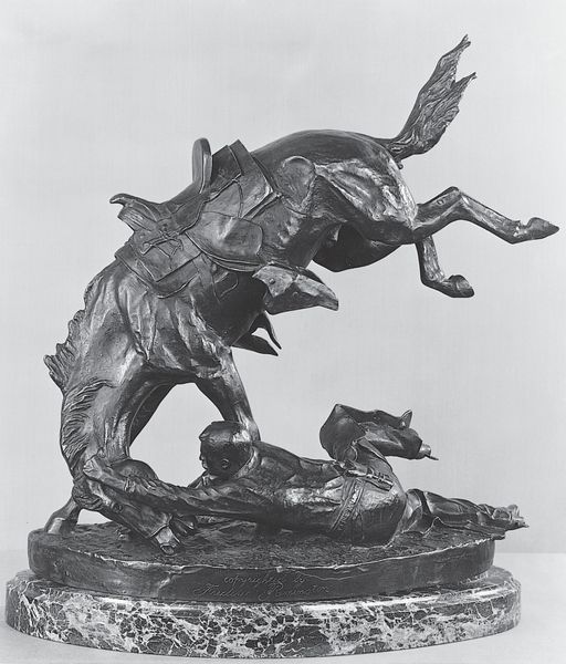 Editor: Here we have Antoine Louis Barye’s bronze sculpture, Seated Hare. It's quite small and captures the hare in a moment of alert stillness. What do you make of it? Curator: Barye's animal sculptures gained popularity during a period of urbanization and industrialization. This hare, mass-produced in bronze, became a surrogate for lost nature, democratizing access to wildlife imagery for a burgeoning middle class. What do you think about that? Editor: Interesting. So, it’s less about the hare itself and more about what it represented to society at that time? Curator: Precisely. Barye and others helped define the public’s understanding of nature, framing it for consumption, both literally and figuratively. I now see this hare as a product of shifting social and economic forces. Editor: I hadn't considered that! Thanks for providing that additional context.