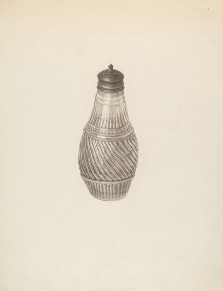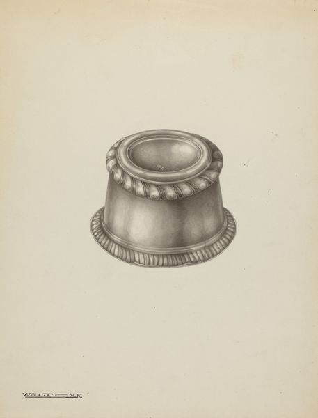 Editor: Here we have Giacinto Capelli’s "Inkwell," created around 1938. It’s a pencil drawing on paper, and there’s a quiet, almost nostalgic feeling about it. What interpretations come to mind when you see this work? Curator: My eye is drawn to the meticulous detail, but also the simplicity. The era – pre-World War II Italy – invites consideration of context. Everyday objects become stand-ins. Was this artist critiquing industrialization’s threat to the tradition of the written word? How did advancements in printing affect societal structure at this time, particularly within a fascist regime focused on control of information? Editor: I never would have thought about that! I was just seeing it as a simple drawing of an object. Curator: Objects often carry within them narratives. An inkwell is intrinsically tied to literacy, education, power… the ability to communicate and record. In the late 1930s, access to these tools – and the freedom to use them – was far from universal, right? Look closely; what does the material feel like? Smooth glass? How does that relate to who might own it and its availability for the average person? Editor: I guess if it's glass it seems class-based. Like an intellectual with education and position. Curator: Precisely! The very act of drawing it then could be an act of preservation, resistance, or perhaps even commentary. Can art serve to preserve the means of literacy? Can art change how power works and the systems within it? Editor: It’s incredible to consider how a simple object, rendered in pencil, can hold so much cultural and historical weight. Thank you. Curator: My pleasure. Never underestimate the power of the mundane. The most common items can tell us stories about access, identity, and resistance.