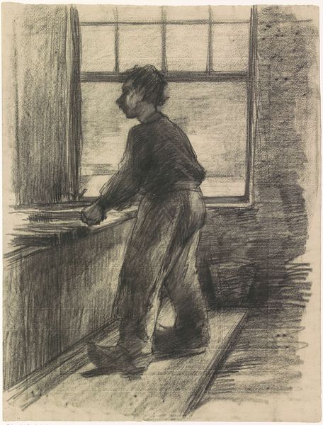 Editor: This is Jan Chalon’s self-portrait, made sometime between 1748 and 1795 using ink through the intaglio method. The image has such a still, almost contemplative feeling. It really draws you in. What historical narratives do you think shape our understanding of this portrait? Curator: Well, consider the context. Self-portraits at this time were becoming more common, reflecting a growing sense of individual artistic identity within the broader societal shifts towards Enlightenment ideals. Editor: Interesting. So the very act of creating a self-portrait was, in a way, making a statement? Curator: Precisely! The act of self-representation challenges previous portrait styles which primarily showcased the wealthy. Furthermore, the act of depicting oneself working, as we see here, reinforces the idea of the artist as a skilled laborer and intellectual, actively shaping their own image and promoting their profession. The setting - in front of a window, bathed in light, the tools of creation on the table - does it not invoke similar paintings of the Renaissance? Editor: I see what you mean! It elevates his status by connecting him to a richer artistic legacy. How do you think contemporary audiences would perceive it back then? Curator: A viewer during that period, familiar with the art world and its established hierarchy, would likely view it as a conscious effort by Chalon to insert himself into a lineage of celebrated artists. This in turn provides some clues as to the social ambition and entrepreneurialism among baroque painters. Editor: That makes a lot of sense. I never considered how deliberate image crafting was back then. Curator: These kinds of early portraits are all the more impactful when one analyzes how the museums shaped the way we view these paintings later. Editor: Right, I hadn't thought of it that way before. Thanks for offering a completely new angle. Curator: Indeed. Seeing it displayed as "art" transforms its role in the cultural sphere, rather than its significance during production.