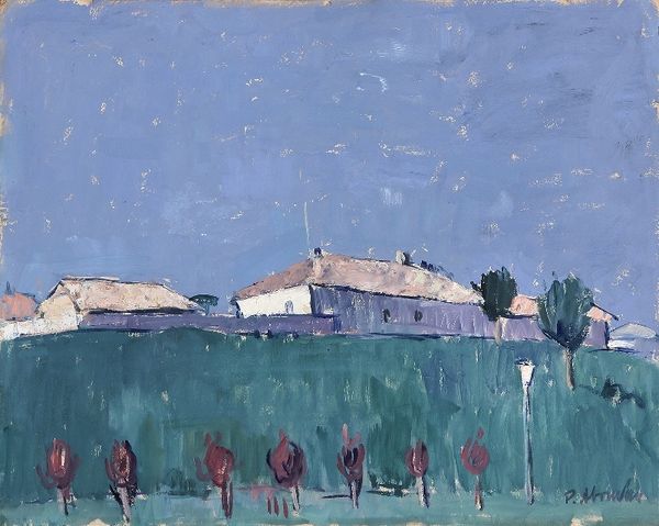 Editor: Here we have Eugène Jansson's "Stadens utkant," painted in 1899, using oil paint. I'm immediately drawn to the almost melancholic atmosphere; the stark building contrasting against the swirling sky feels quite isolating. How do you interpret this work in its historical context? Curator: Jansson’s choice to depict the outskirts of the city invites a fascinating exploration of the social and political currents of the late 19th century. As cities expanded, these liminal spaces became sites of both opportunity and anxiety. Note the large building - probably apartments - imposing a formal presence on what appears to be farmland. Editor: So, this wasn’t just about capturing a landscape, but more about what that landscape represented? Curator: Precisely! Jansson was deeply engaged with depicting the changing urban fabric of Stockholm. The painting embodies the push and pull between rural traditions and modern urbanization. This shift impacted societal structures and individual experiences, contributing to emerging senses of alienation, even amongst the working classes. Think about how art institutions at the time may have regarded scenes that moved away from traditional idyllic pastoral paintings. Editor: That's a great point. I hadn’t really thought about what it meant for the people living on those outskirts. Does that relate to why there aren't any people visible? Curator: Yes, that absence amplifies the themes of isolation and the loss of connection with nature. But is the perspective that Jansson brings one of entirely bleakness, or are there also, perhaps, indications of possibility that this form imposes over the landscape? Editor: Hmm, the solid presence of the buildings suggests maybe permanence and the growth of a new society. I'll definitely consider the social and institutional elements more when I look at art from now on. Thank you for broadening my perspective!