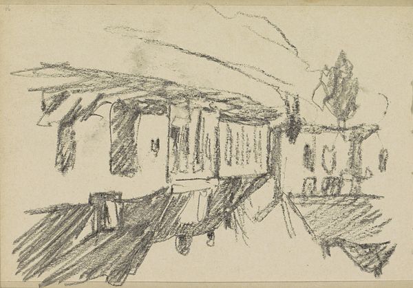 Curator: Oh, this is a personal favorite: Julie de Graag's pencil drawing, dating from around 1892, titled *Stoomlocomotief en een huis met een schoorsteen naast twee bomen.* Or, *Steam Train and a house with a chimney next to two trees*. Editor: Immediately, I’m struck by how much story is packed into what feels like a fleeting glimpse. It has a curious stillness. It reminds me of a faded photograph – a record of a quickly changing world. The graphite is so sensitively worked. Curator: Absolutely, and you can really see de Graag capturing that very turning point. It’s such an unassuming medium, pencil on paper, but look at how she builds layers and tone to depict not only the industrial revolution chugging along, but the humble homes it forever altered. Editor: I’m thinking about that chimney, puffing away like the train itself – the domestic mirroring the industrial, both relying on labor. The texture around that cottage— it feels almost hastily drawn. Are we to see it as decaying in the presence of the mighty machine? Curator: Perhaps! I see it as the quickening pace of life, all blurring at the edges! You can almost hear the low rumble of the engine in contrast to the still morning air near the house. De Graag isn’t judging, though. She simply observes and presents this juxtaposition. Editor: True. I can’t help but think about how accessible a pencil is, democratizing the art-making process, while this belching engine would have drastically changed work opportunities, and even dictated working hours for some. And also...just looking at the actual material, pencil, and all its potential. The surface has taken the image so nicely! Curator: De Graag embraced the potential and saw poetry in progress, rendering it all in wonderfully textured graphite, didn’t she? It’s like she anticipated that the scene was about to vanish. Editor: Exactly. It makes you consider how profoundly art, whether monumental or minimal, interacts with the ebb and flow of progress and memory. Curator: Yes. Seeing de Graag's impression has definitely stayed with me and hopefully encourages that spirit in everyone else as well.