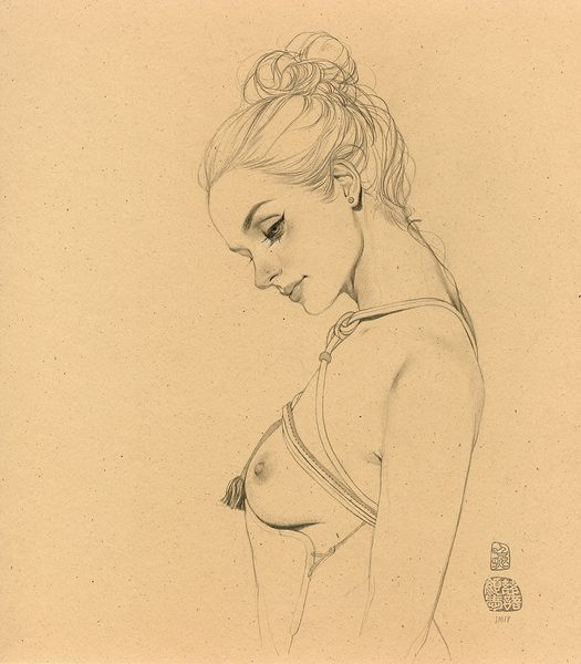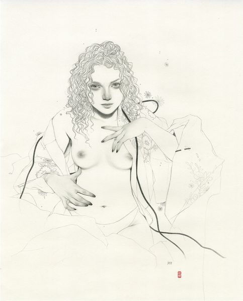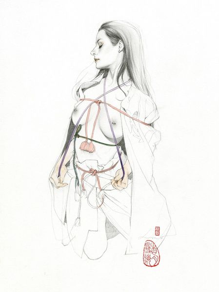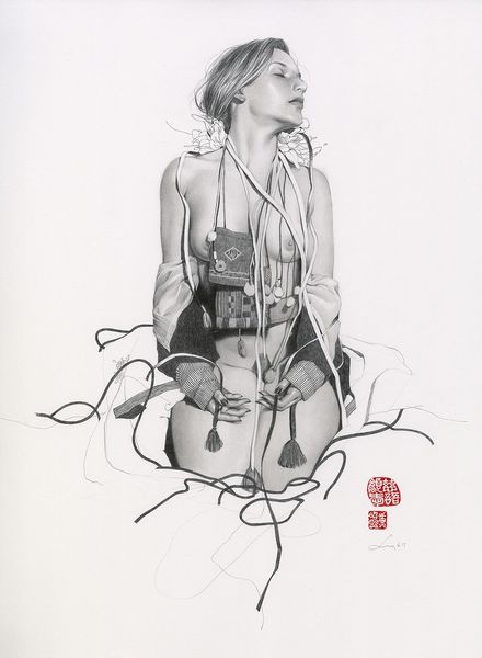 Soey Milk made this graphite drawing called “Cat’s Cradle,” and you can really see the artist feeling her way through the image. Graphite is a humble material, but in her hands, it becomes so much more. I’m struck by the contrast between the woman’s soft, rounded form and the sharp, angular lines of the string. Notice how the graphite is layered to create depth and shadow on the figure, while the string is rendered with a clean, almost clinical precision. Look closely at the way the string loops around the woman's fingers, each knot and twist carefully delineated. The line is so insistent, demanding our attention. It reminds me a little of Francesca Woodman’s photography, where the artist uses her own body to explore themes of identity and vulnerability. Like Woodman, Milk seems interested in the way the body can be both a source of power and a site of constraint. Art’s not about answers, is it? It's more about asking the right questions.
