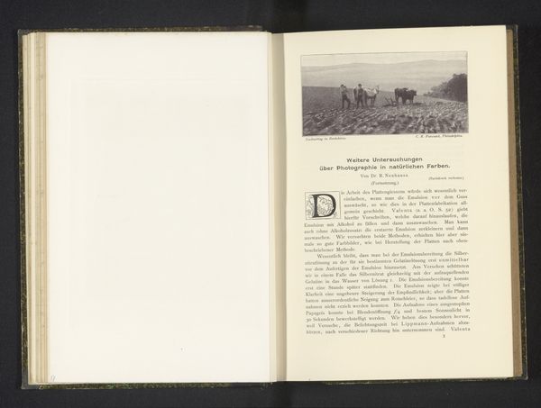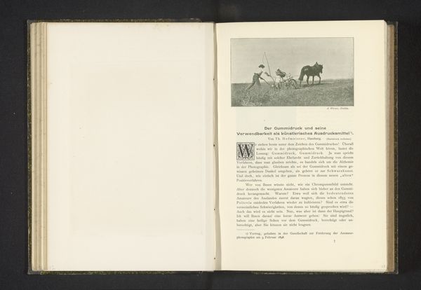 This is a reproduction of a photograph by C. J. Baynton. It shows a woman and two men working the land with a horse and wagon. The composition is dominated by the strong horizontal line of the horizon, dividing the scene into a muted ground and an indistinct sky. Baynton utilizes a muted palette, with shades of gray and brown dominating the visual field. The texture appears grainy, typical of early photographic processes, which adds a sense of historical distance and emphasizes the materiality of the image. The use of light and shadow creates tonal contrasts, delineating forms within the scene. This image reflects the structuralist interest in depicting labor and rural life. It challenges the romanticized views of pastoral scenes by presenting the scene in a straightforward manner. The starkness and simplicity function as signs that can be interpreted within broader cultural narratives about work and representation. In its formal austerity, Baynton’s work invites us to reconsider how images mediate our understanding of everyday life.